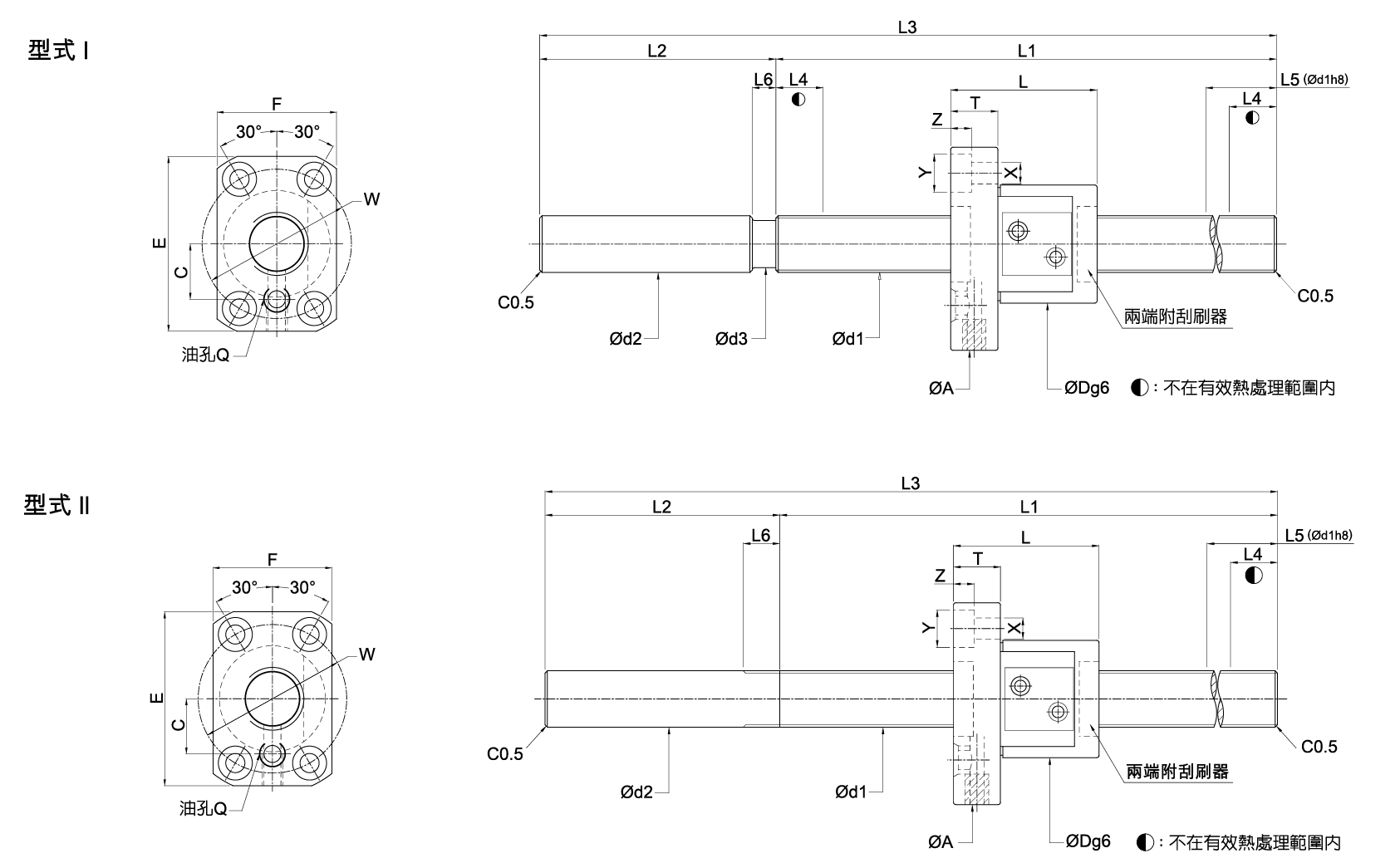 轴端未经过热处理加工,保留丝杆轴两端中心孔,可容易加工轴端肩部尺寸。
